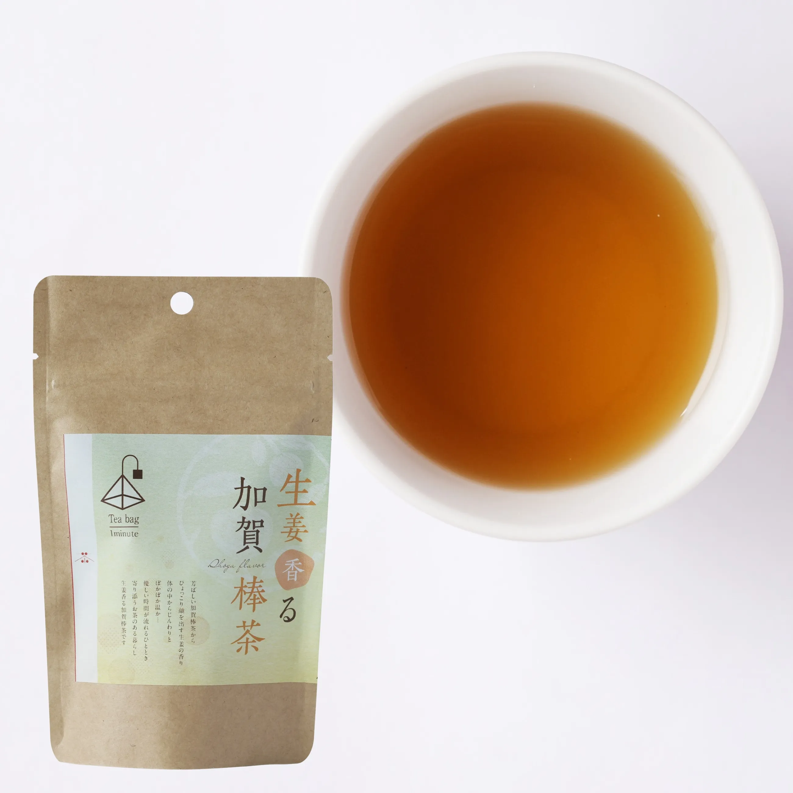 低温焙煎された茎茶ならではの香ばしさと、 生姜のほのかな辛味と温かみが調和し、 心も体もほっとする味わいに仕上げました。