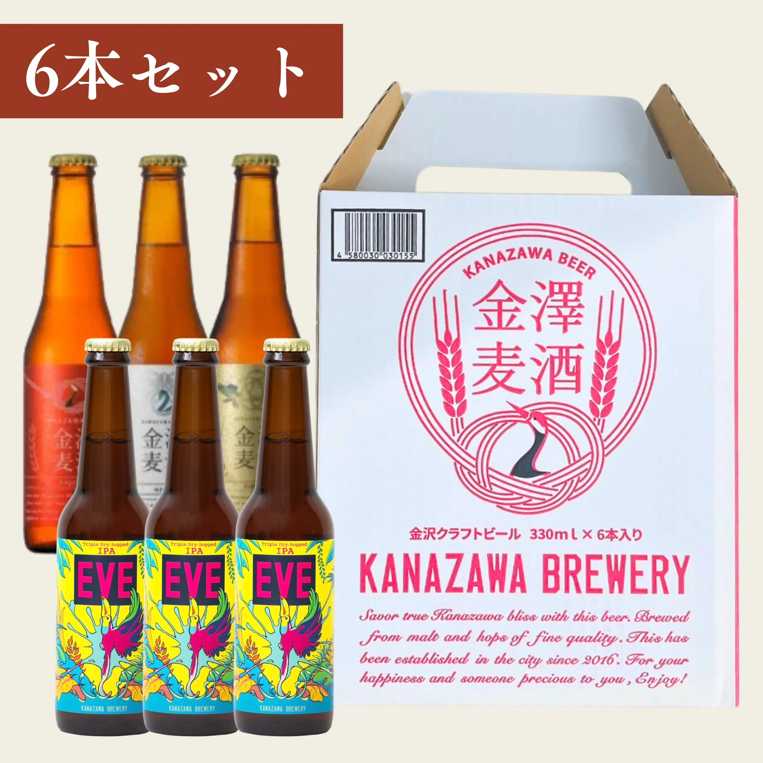 ■【送料無料】【金澤ブルワリー】【クラフトビール】【地ビール】金澤麦酒 IPA-EVEと定番3種 330ml瓶6本セット