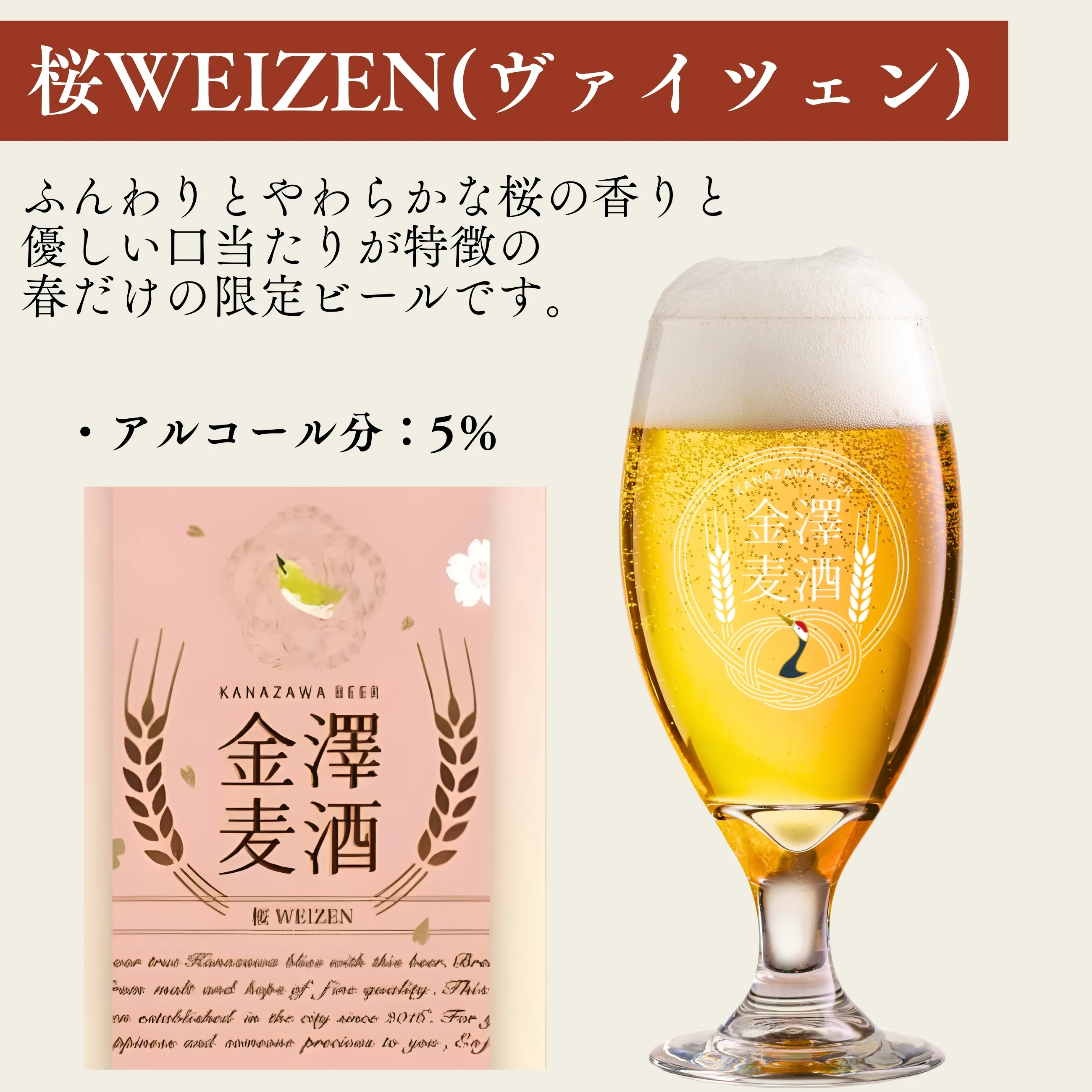 「桜ヴァイツェン」は、金澤ブルワリーが春限定で醸造する数量限定クラフトビールです。 小麦麦芽を使用したヴァイツェンならではの、なめらかでやさしい口当たりが特長。