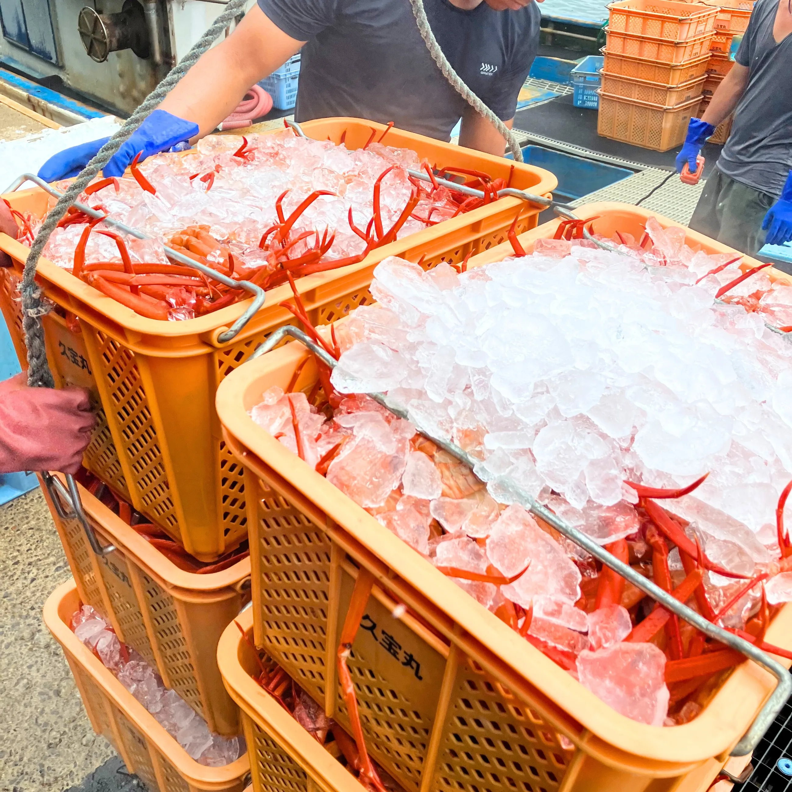 カニ籠漁業で捕獲された、紅ずわいがにをなんと、活きたまま発送! 紅ズワイガニは本ズワイガニと比べ、カニ味噌と身入りがやや少ないですが、甘みが強くみずみずしい身が特徴です。捕れたてで鮮度抜群の紅ずわいがにを直送致します!