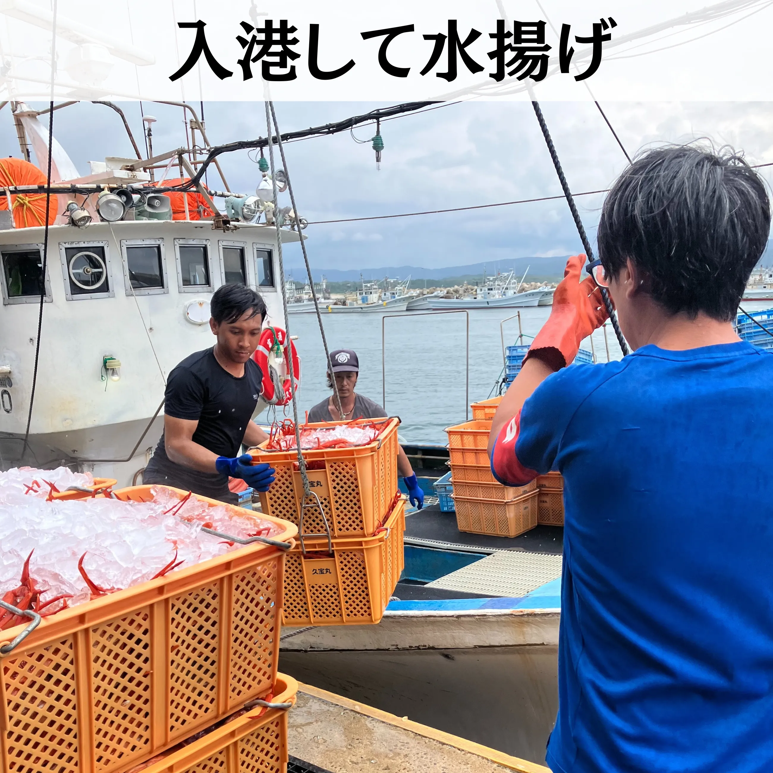 日本海の水深500~2000メートルの海底に生息しており、「かご漁」という漁法で獲られています。