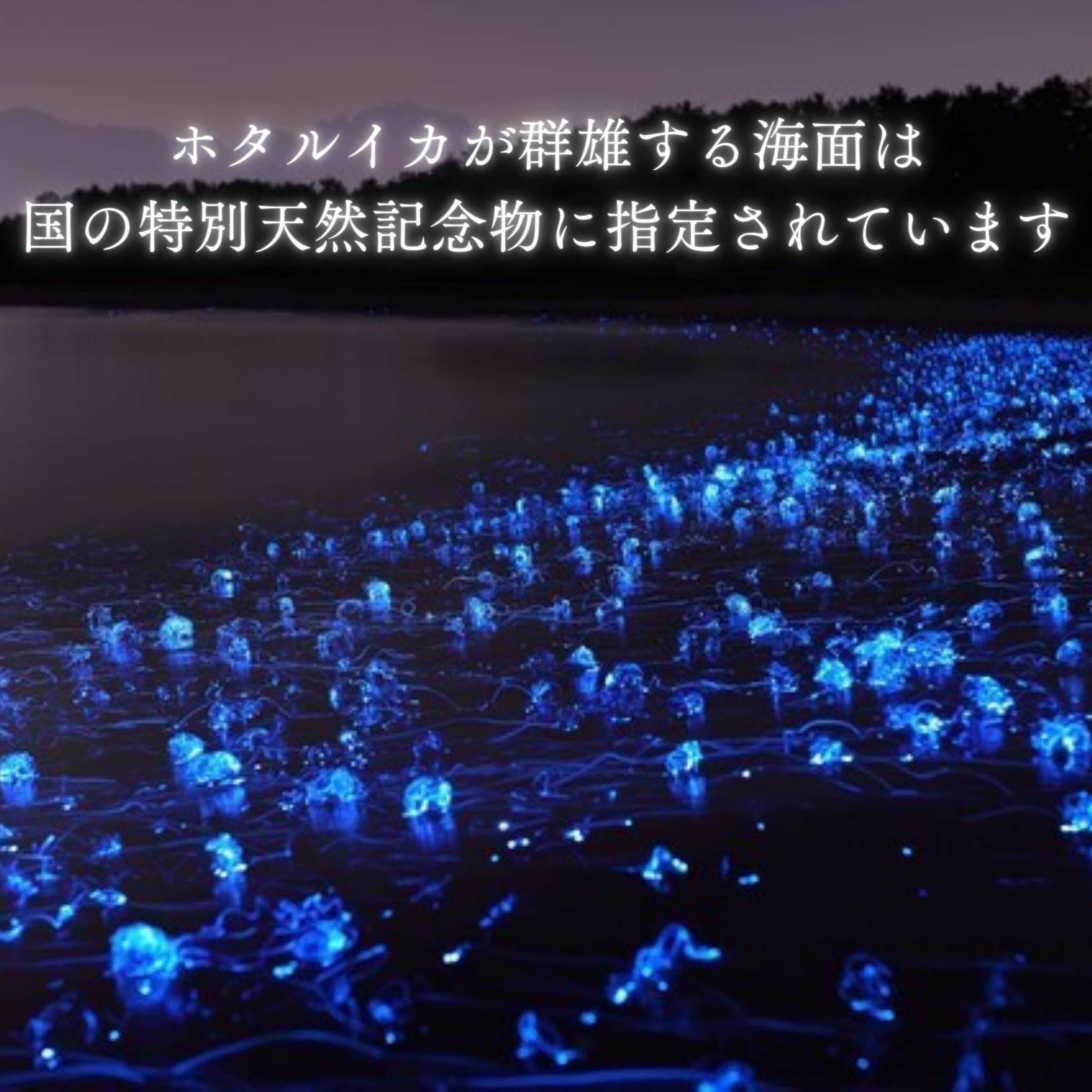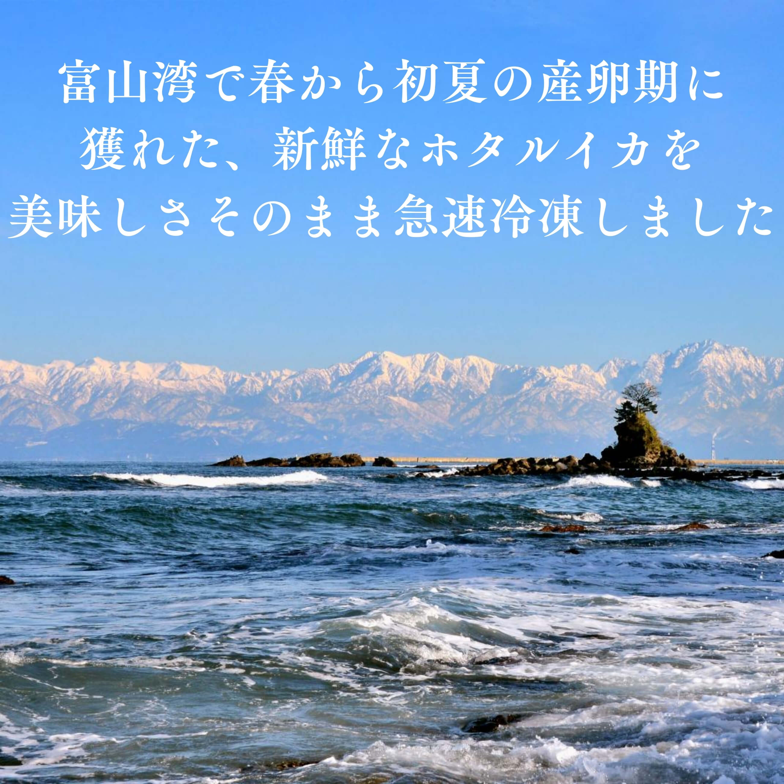 立山連峰からの雪解け水が流れ込む富山湾で育ったホタルイカを春から初夏の産卵期に漁獲し、とびきり鮮度のよい状態で急速冷凍しました。