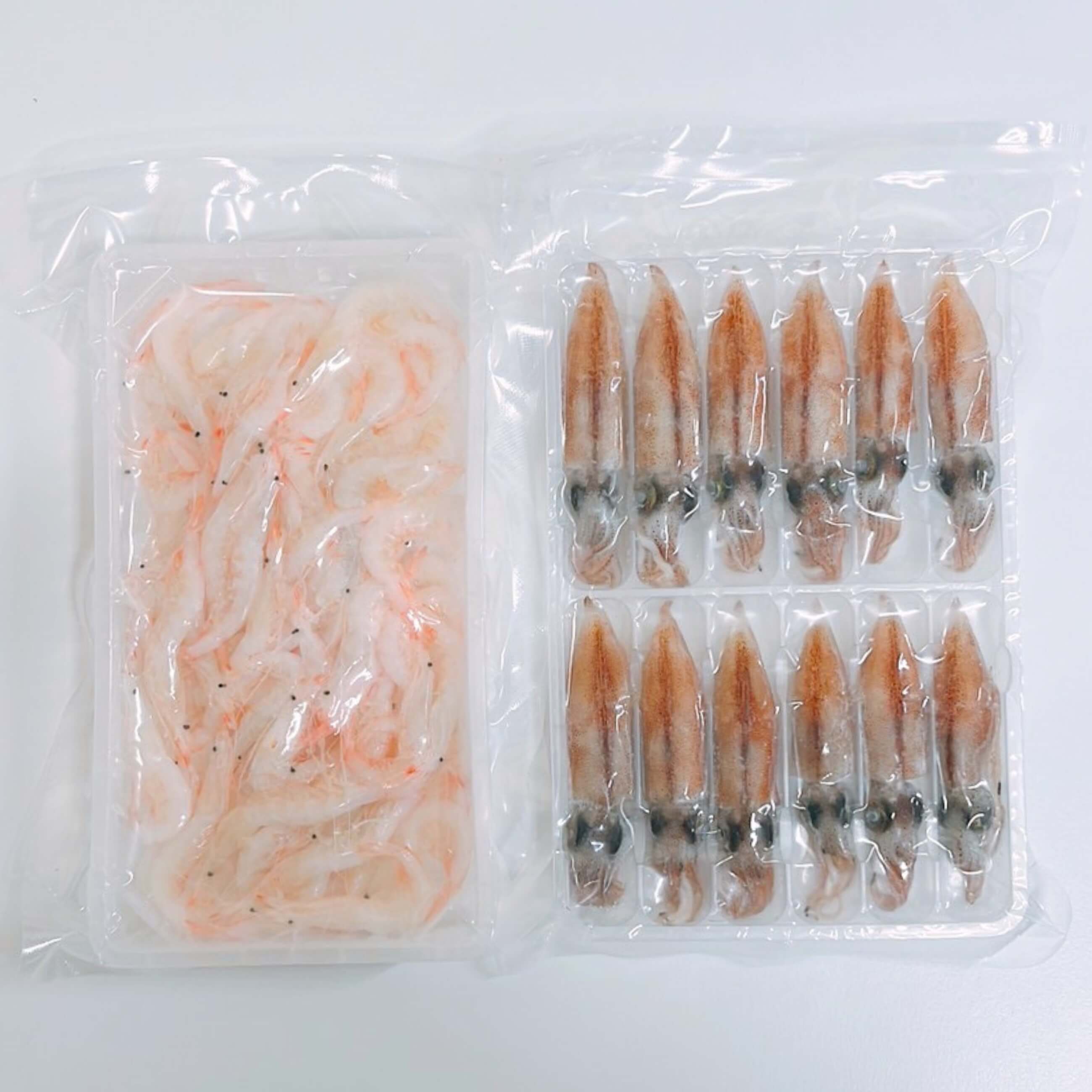 | 内容量 | 生冷ほたるいか12尾、生冷白エビ100g |