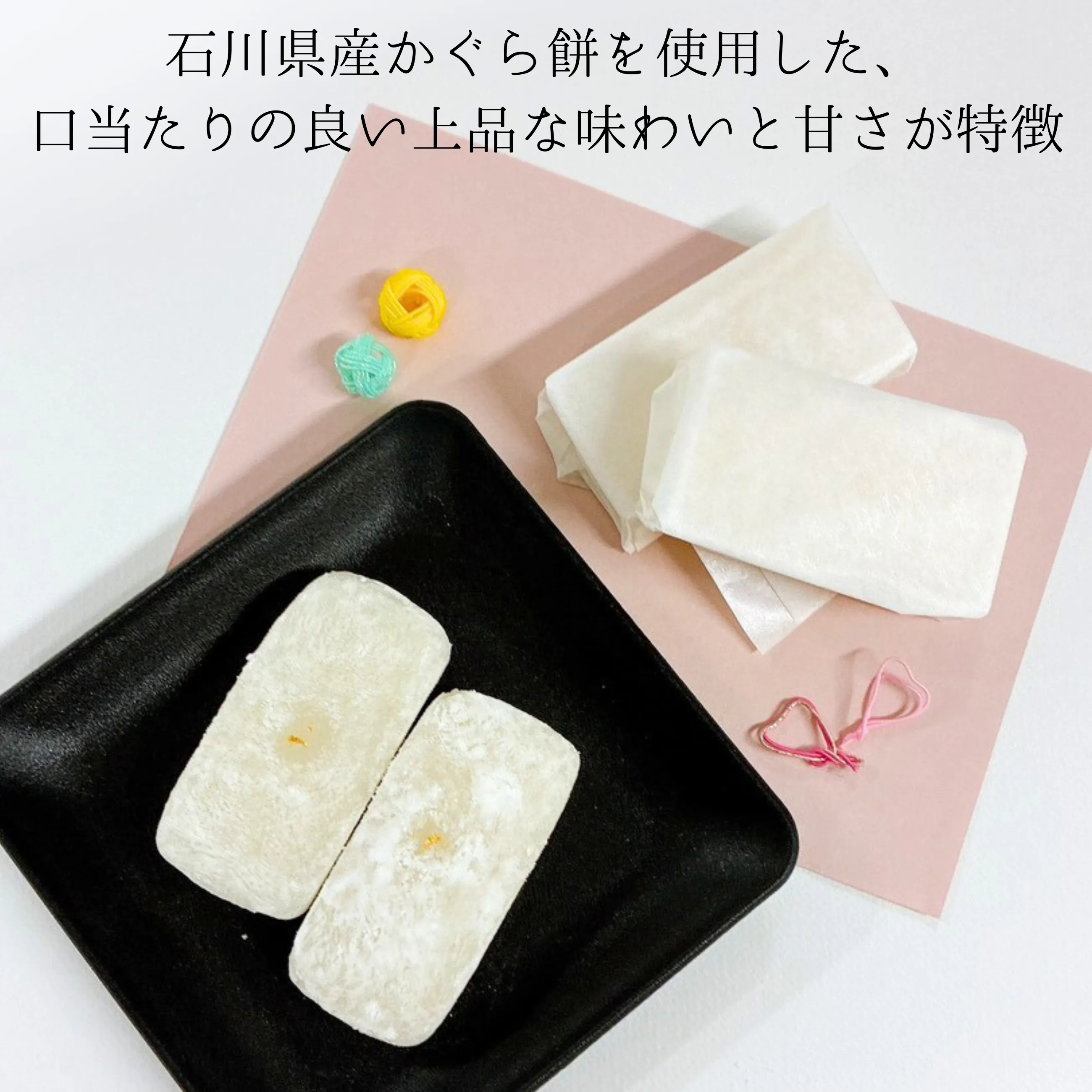 金沢、兼六園からほど近い、老舗和菓子屋石川県産かぐら餅を使用した、口当たりの良い上品な味わいと甘さが特徴のロングセラー商品。