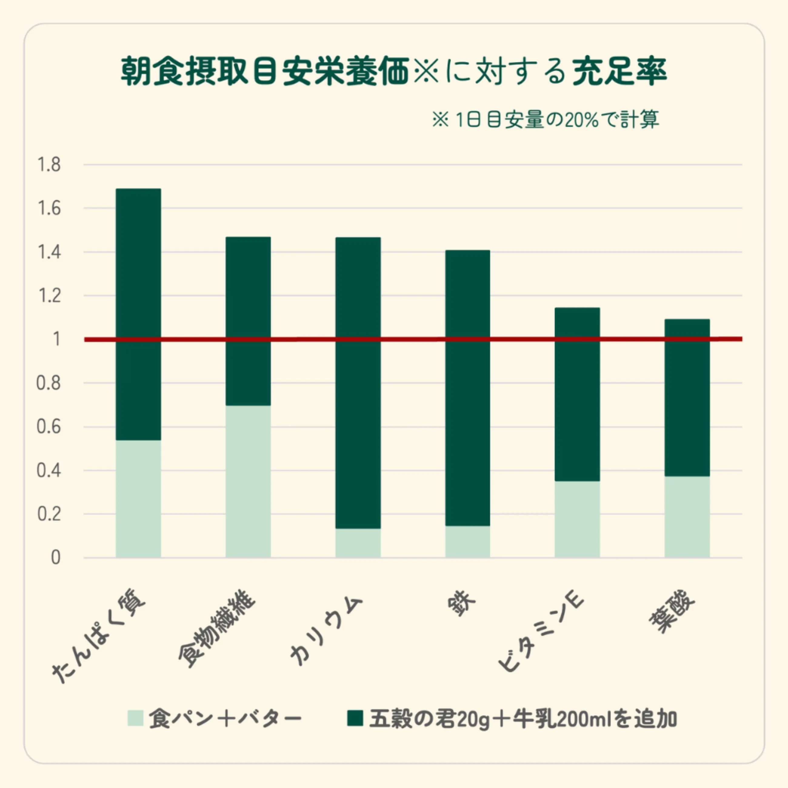 牛乳に混ぜるだけで、簡単にバランスの取れた栄養を摂取でき、焙煎した穀物の香ばしさが口いっぱいに広がります。